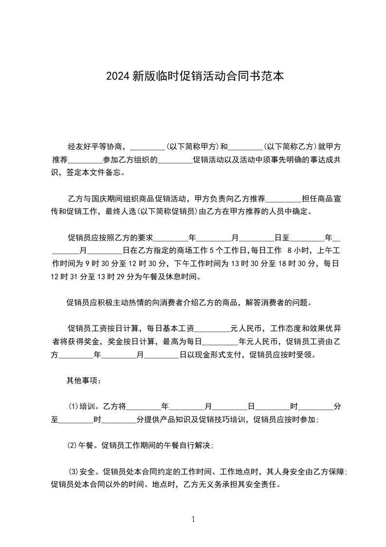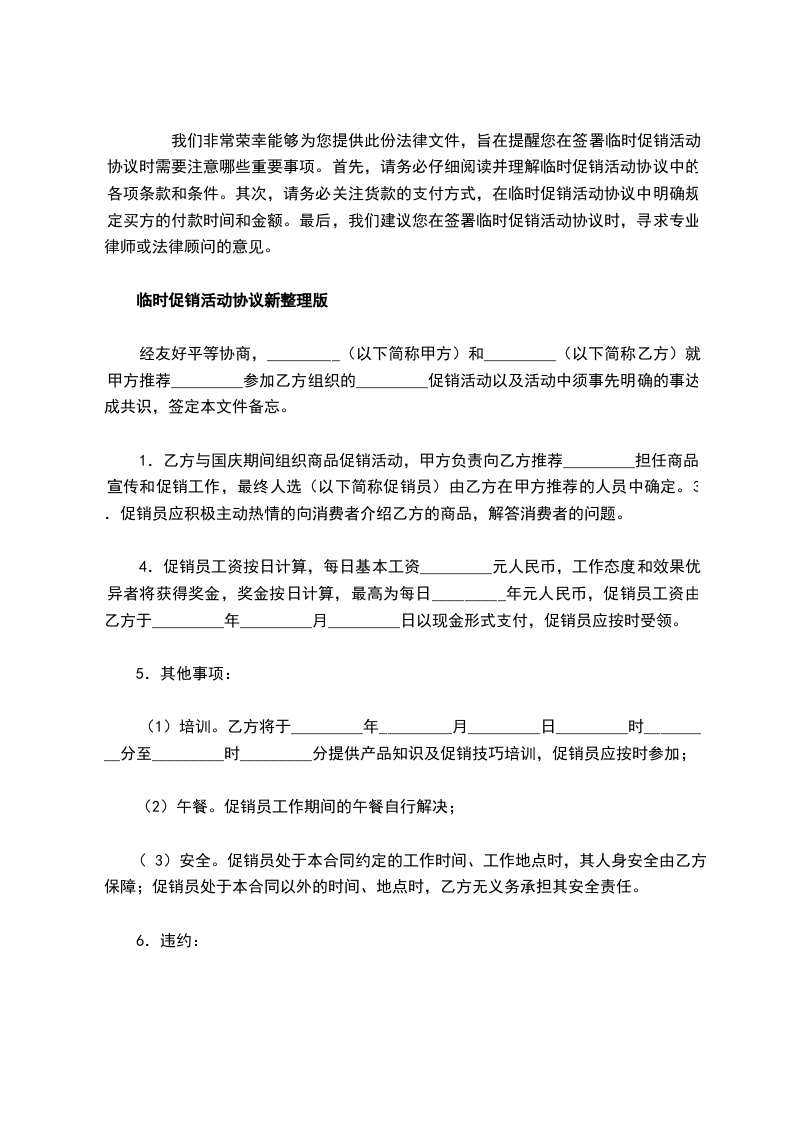 (1)培训。乙方将于_________年_________月_________日_________时_________分至_________时_________分提供产品知识及促销技巧培训,促销员应按时参加;