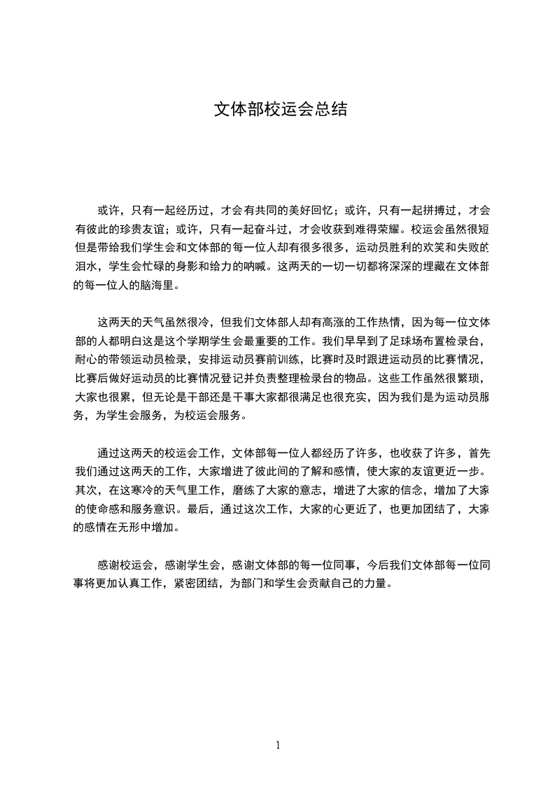 或许,只有一起经历过,才会有共同的美好回忆;或许,只有一起拼搏过,才会有彼此的珍贵友谊;或许,只有一起奋斗过,才会收获到难得荣耀。校运会虽然很短,但是带给我们学生会和文体部的每一位人却有很多很多,运动员胜利的欢笑和失败的泪水,学生会忙碌的身影和给力的呐喊。这两天的一切一切都将深深的埋藏在文体部的每一位人的脑海里。