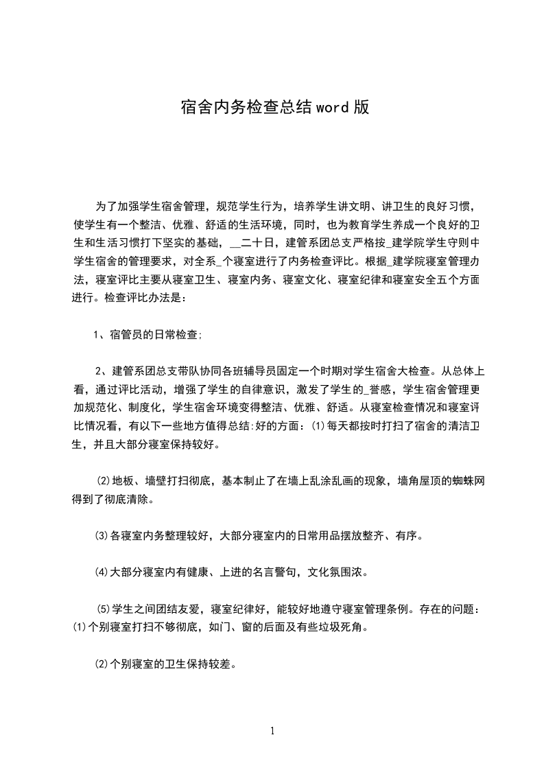 为了加强学生宿舍管理,规范学生行为,培养学生讲文明、讲卫生的良好习惯,使学生有一个整洁、优雅、舒适的生活环境,同时,也为教育学生养成一个良好的卫生和生活习惯打下坚实的基础,20__年十月二十日,建管系团总支严格按《河南城建学院学生守则》中学生宿舍的管理要求,对全系200多个寝室进行了内务检查评比。