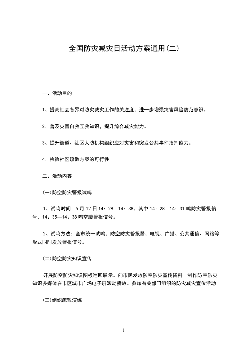 (一)防空防灾警报试鸣