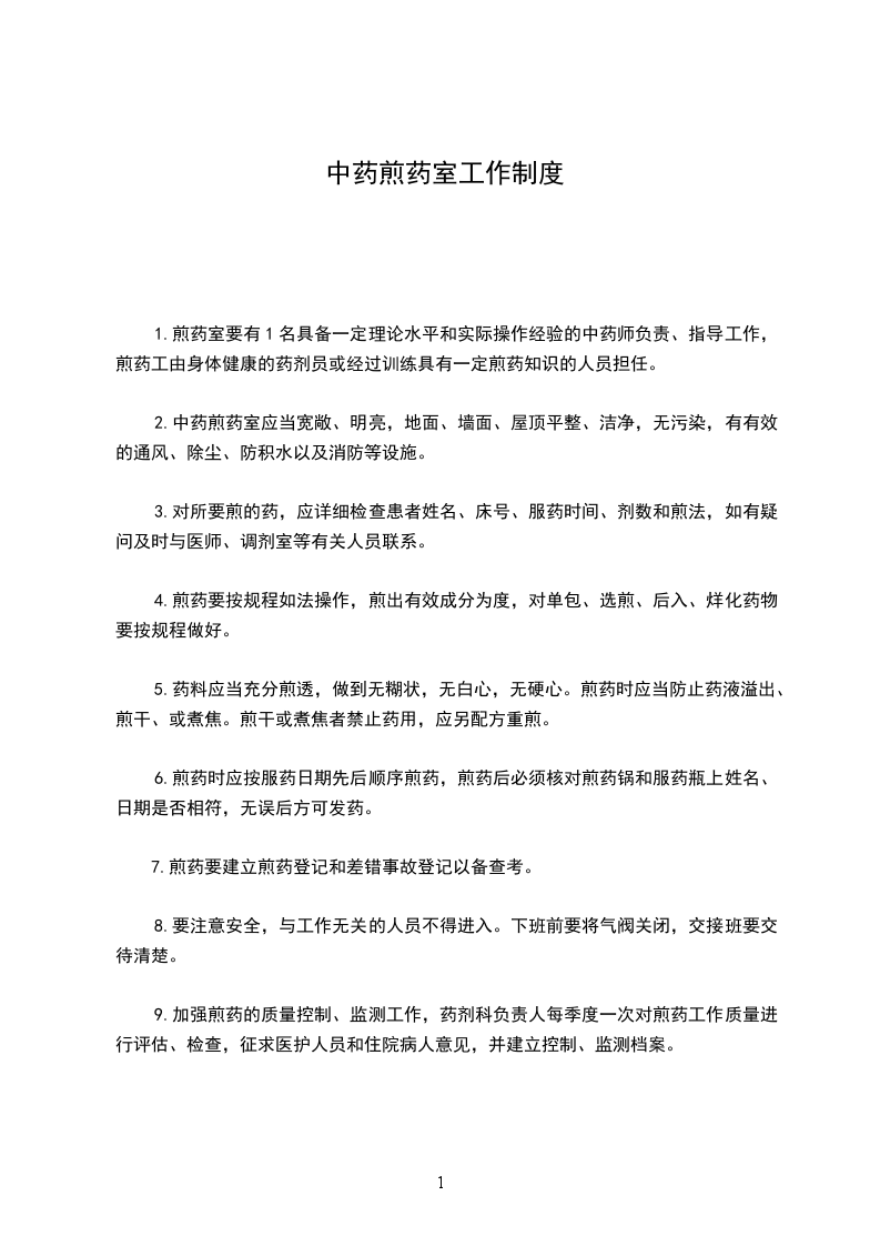 1.煎药室要有1名具备一定理论水平和实际操作经验的中药师负责、指导工作,煎药工由身体健康的药剂员或经过训练具有一定煎药知识的人员担任。