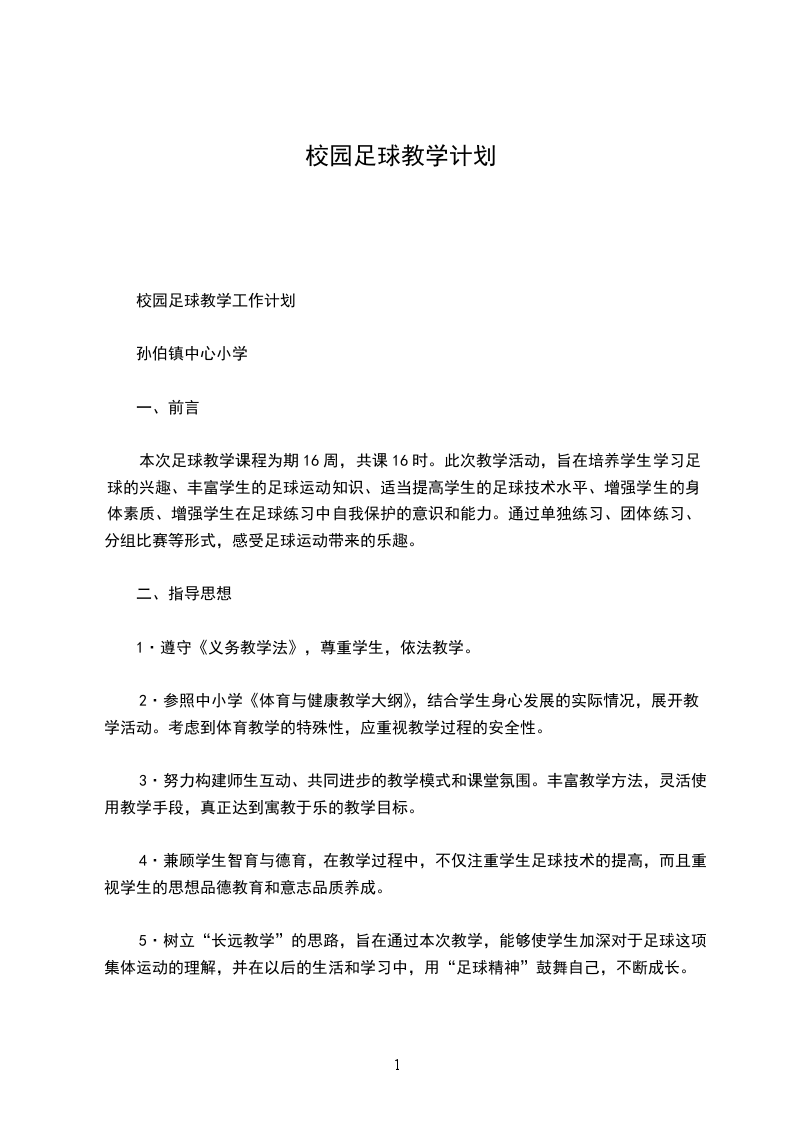 校园足球教学计划