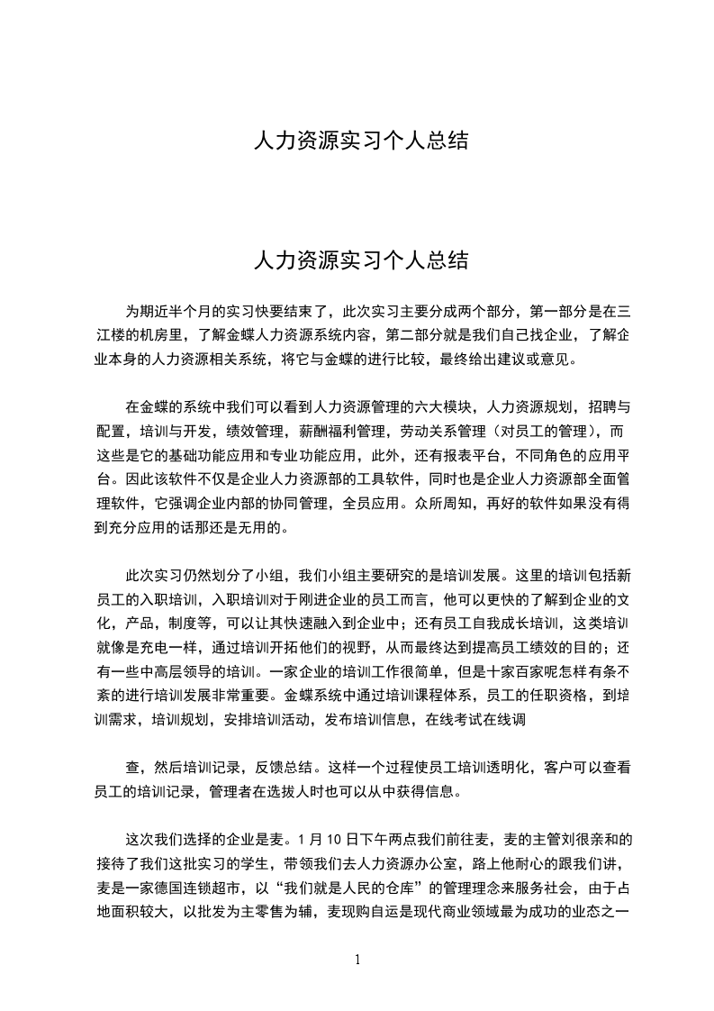 人力资源实习个人总结