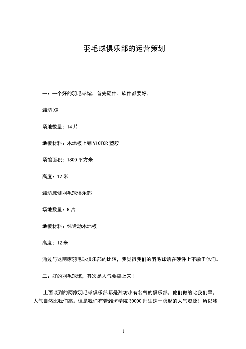 通过与这两家羽毛球俱乐部的比较,我觉得我们的羽毛球馆在硬件上不输于他们。