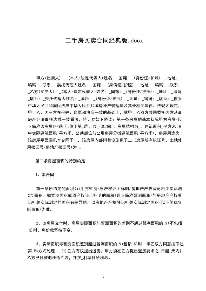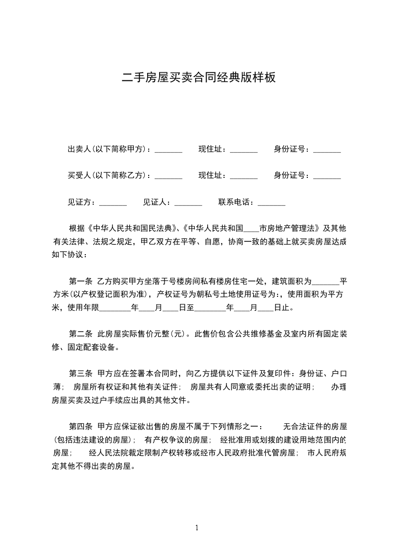 第一条 乙方购买甲方坐落于号楼房间私有楼房住宅一处,建筑面积为_______平方米(以产权登记面积为准),产权证号为朝私号土地使用证号为:,使用面积为_____平方米,使用年限________年____月____日至________年____月____日止。