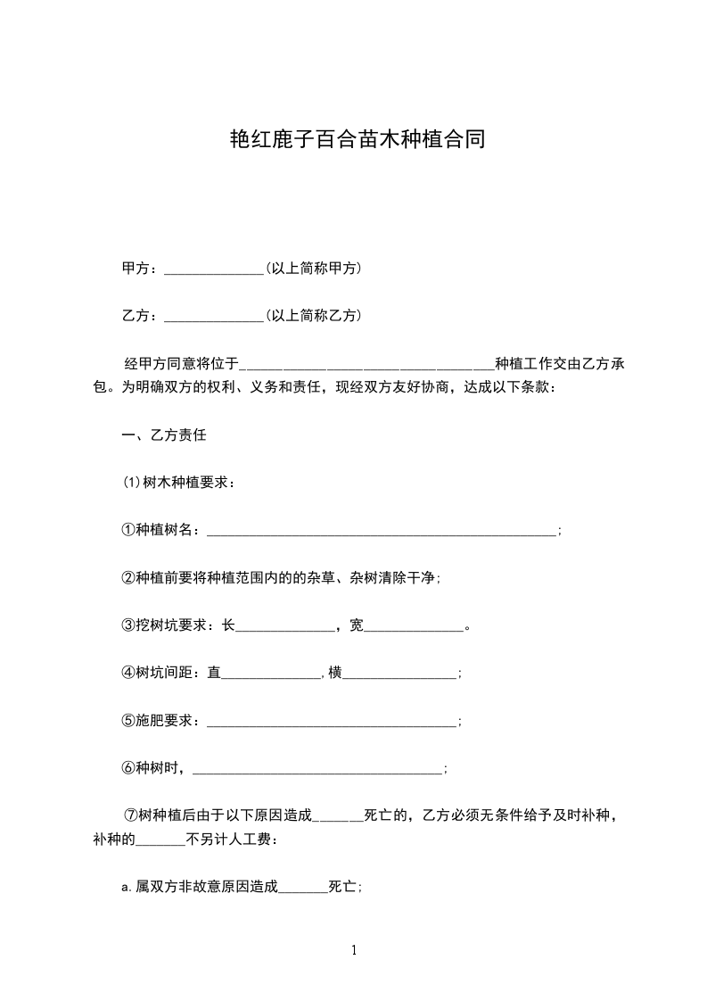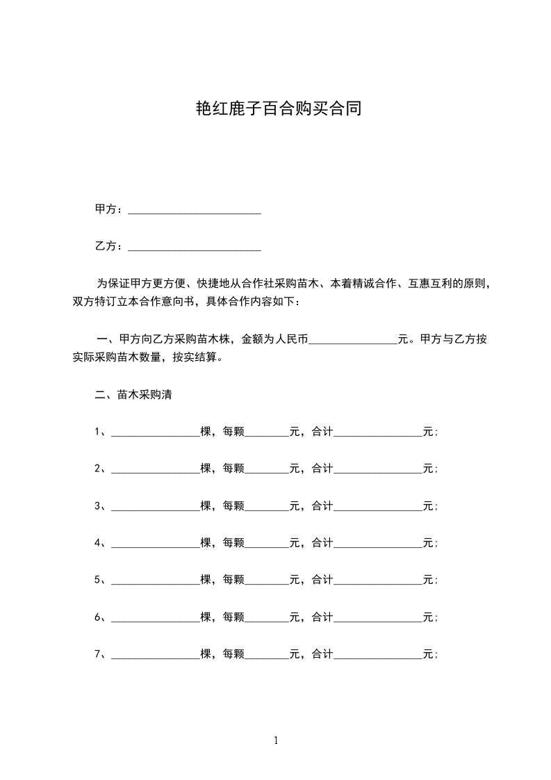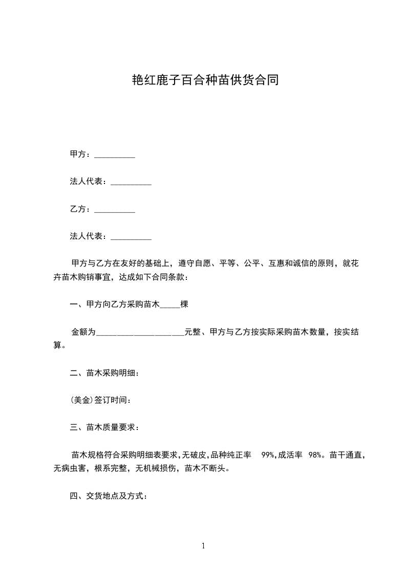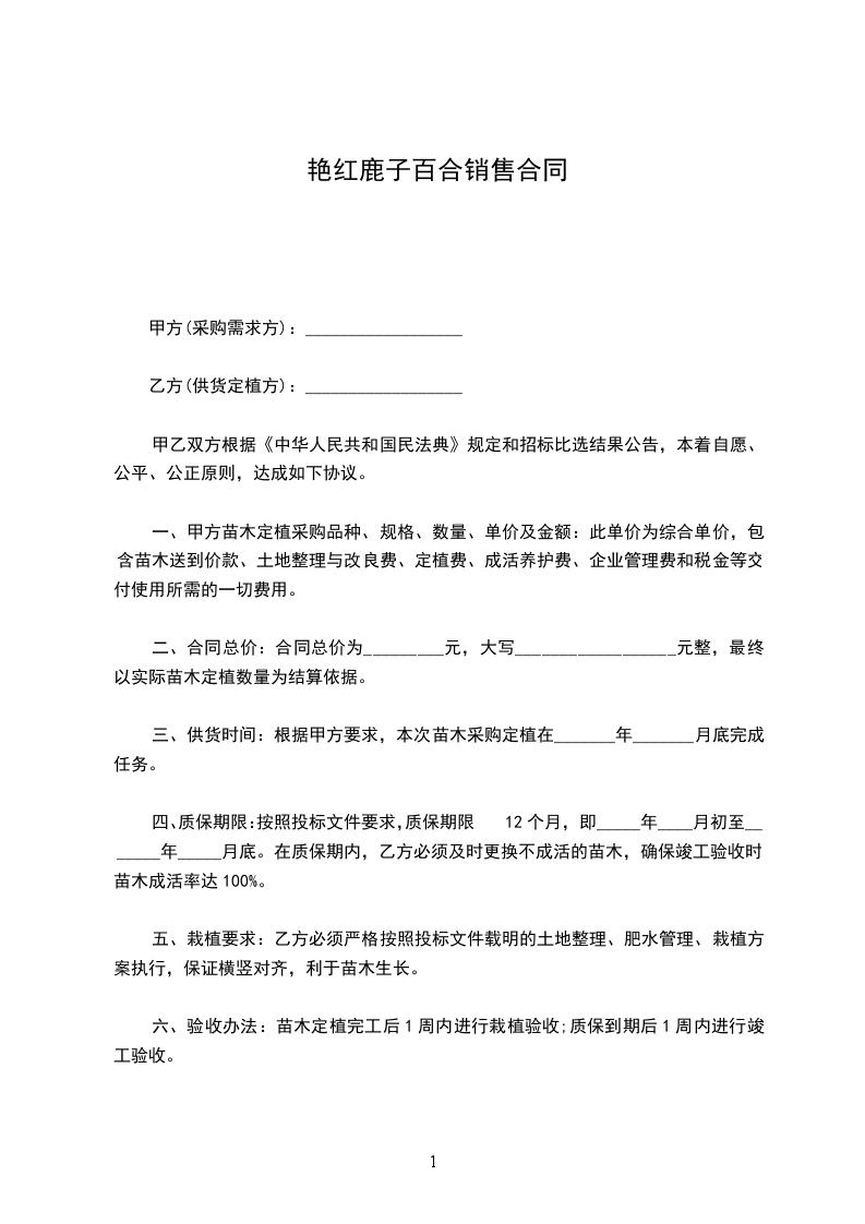 艳红鹿子百合购买合同