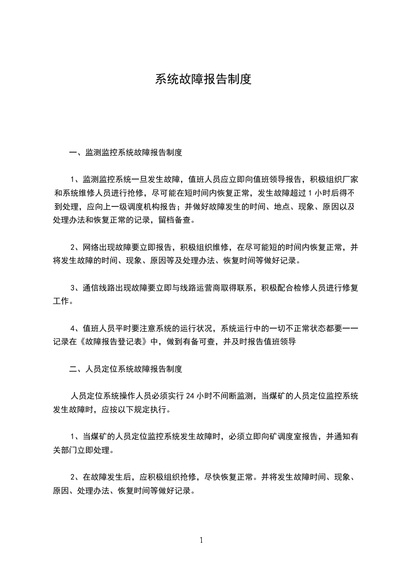 一、监测监控系统故障报告制度