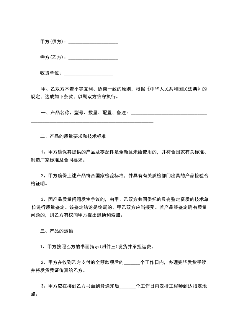 1、经双方友好协商,甲方欲购买乙方生产的___________________型_____________________________________数量________台,购买价格________________________元。