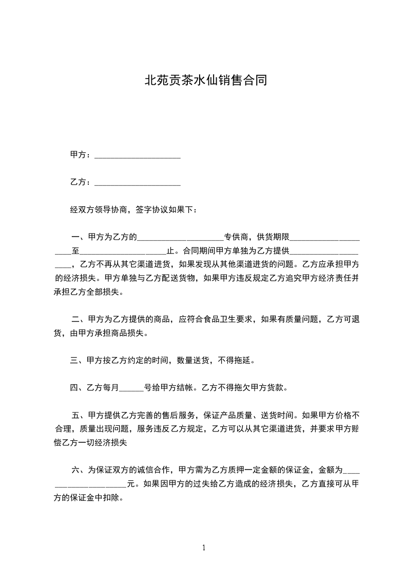 3、产品的保质期为_________________。在保质期内,产品出现非人为损害的质量问题,甲方无条件退货或换货。