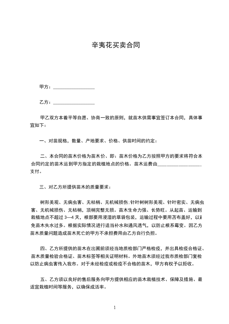 甲乙双方本着平等自愿、协商一致的原则,就苗木供需事宜签订本合同,具体事宜如下: