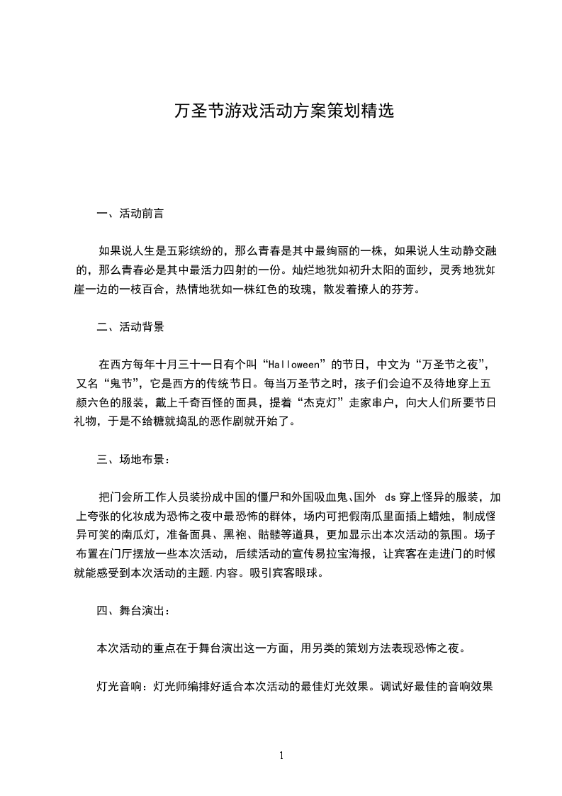 2)准备舞台秀。由同学装扮成各式各样的鬼怪,在舞台上走一圈,注重突出服装的特别之处,然后走向人群,给人群派糖果,让观众更加真实,清晰的感受。如:幽灵、僵尸、吸血鬼、巫婆、科学怪人、精灵、半人马、狼人、魔鬼、哥布林、不死鸟等等。(一定要注意背景音乐的风格,制造怪异的风格达到效果)