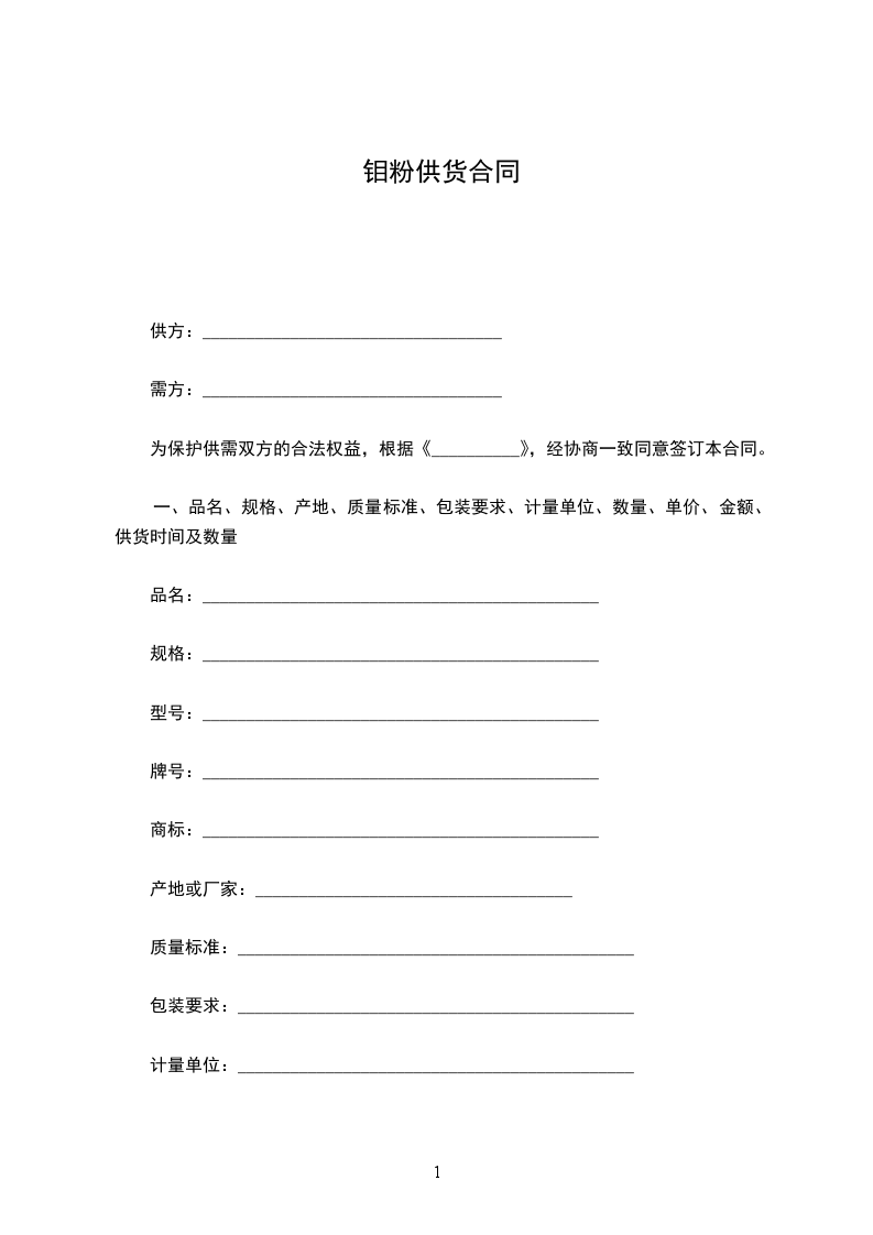 一、品名、规格、产地、质量标准、包装要求、计量单位、数量、单价、金额、供货时间及数量