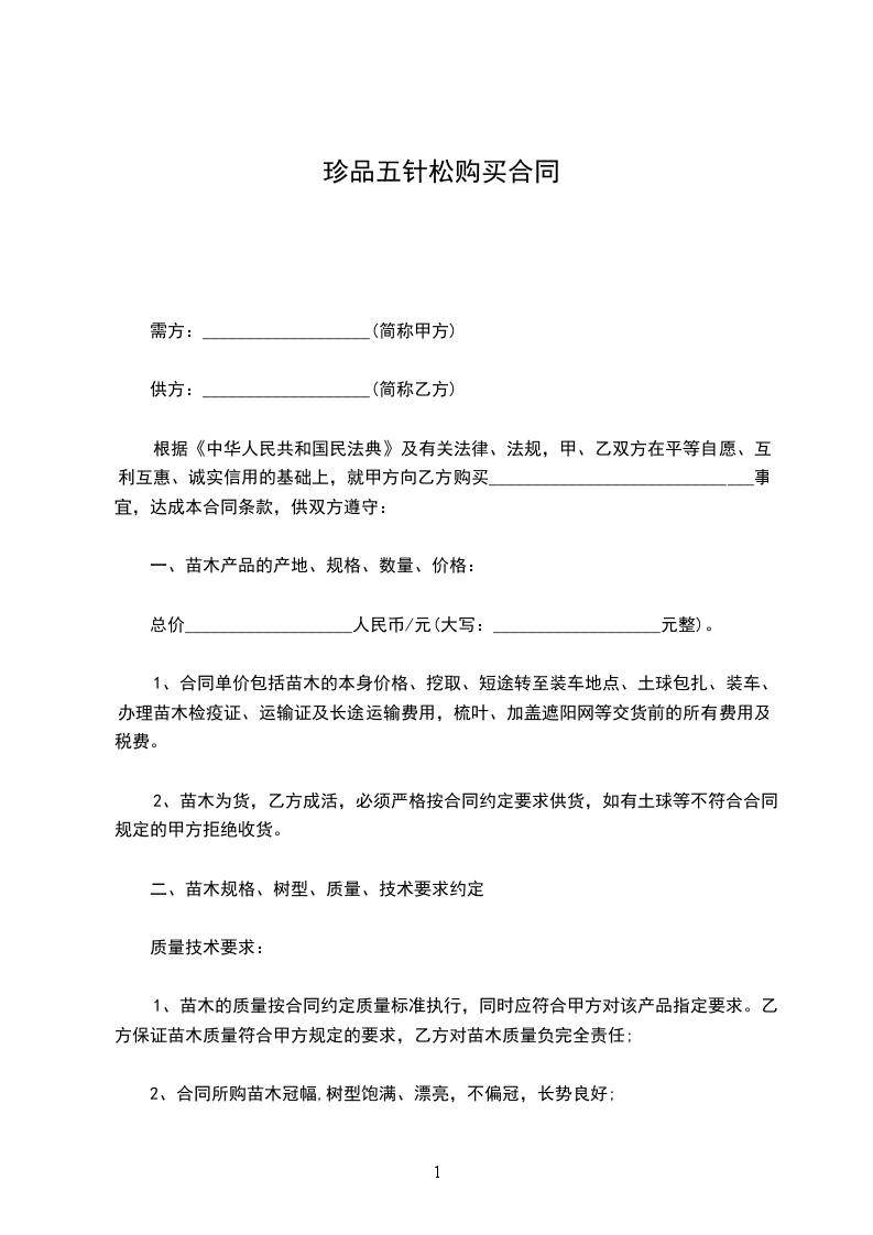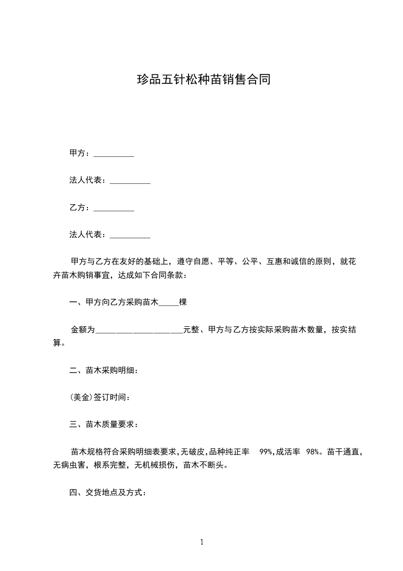 珍品五针松买卖合同