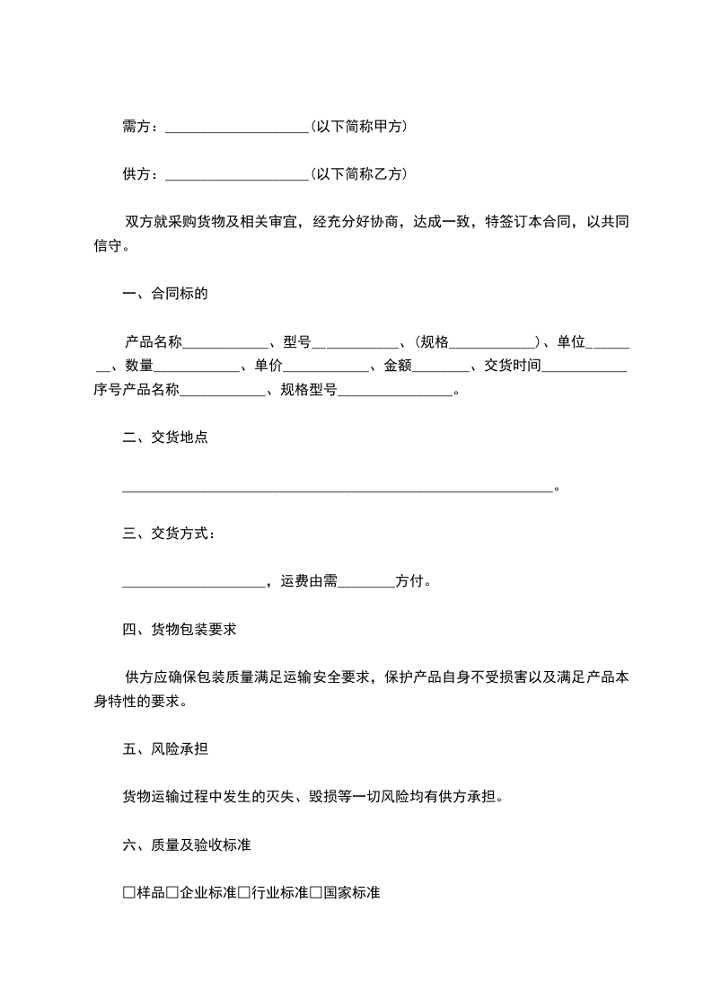 交提(货)方式:供方送货□供方代运□需方自提