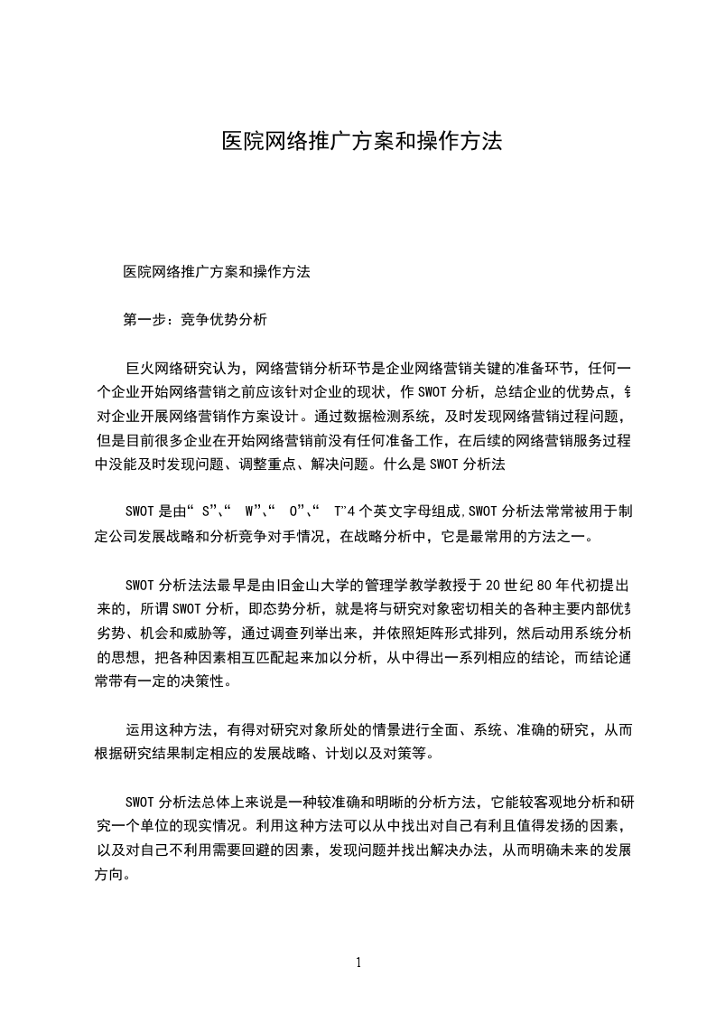医院网络推广方案和操作方法