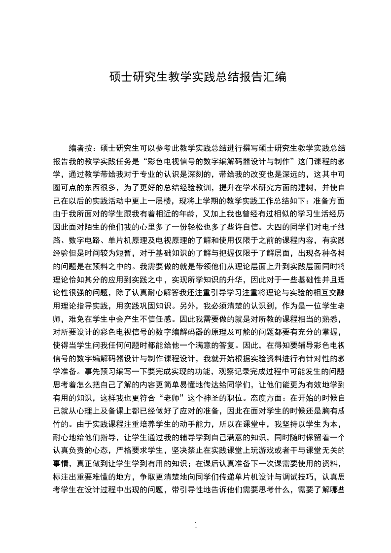 一、实践教学总结报告是专业学位研究生培养过程中的重要环节,是检验和督导研究生培养过程的主要依据,是教育部对专业学位研究生教育工作进行审核评估的基础材料,也是学校对研究生毕业及授予学位进行审查的基本文件。
