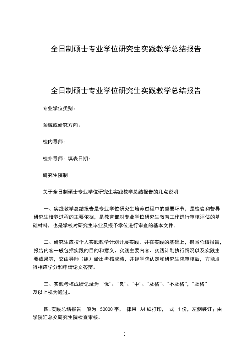 关于全日制硕士专业学位研究生实践教学总结报告的几点说明