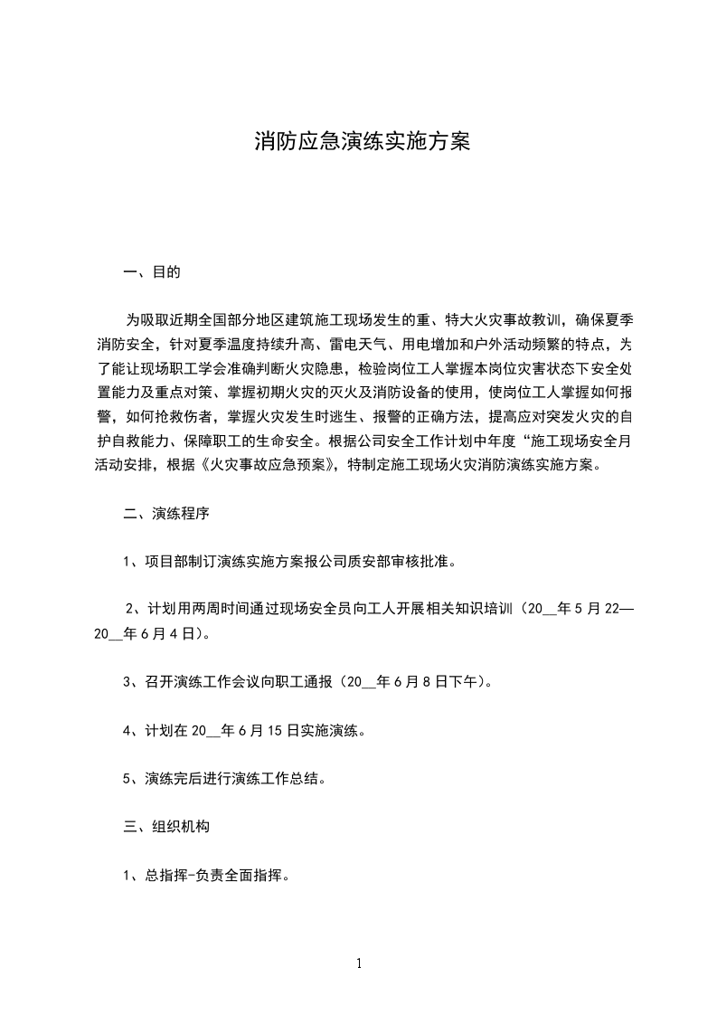 4、计划在20__年6月15日实施演练。