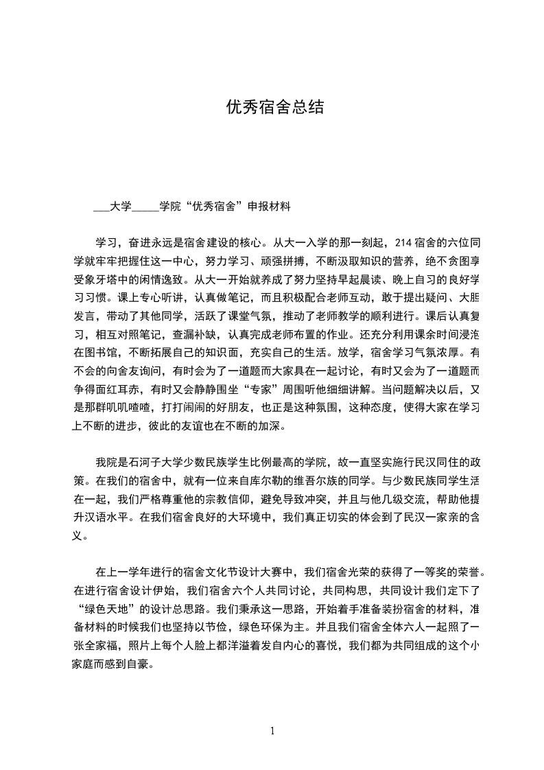 ___大学_____学院“优秀宿舍”申报材料