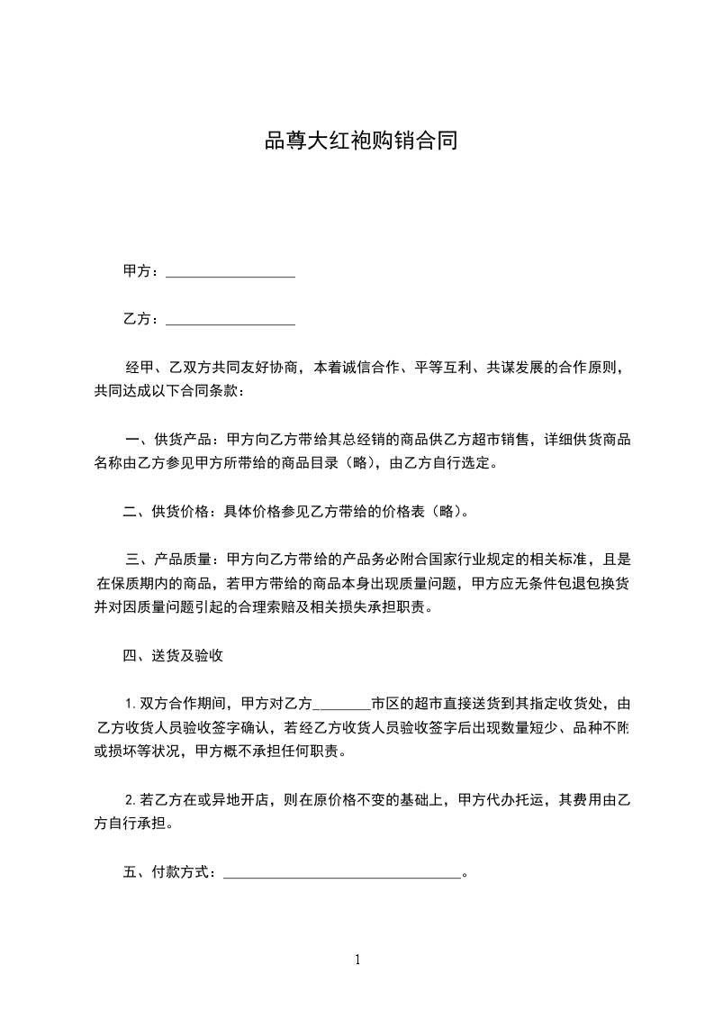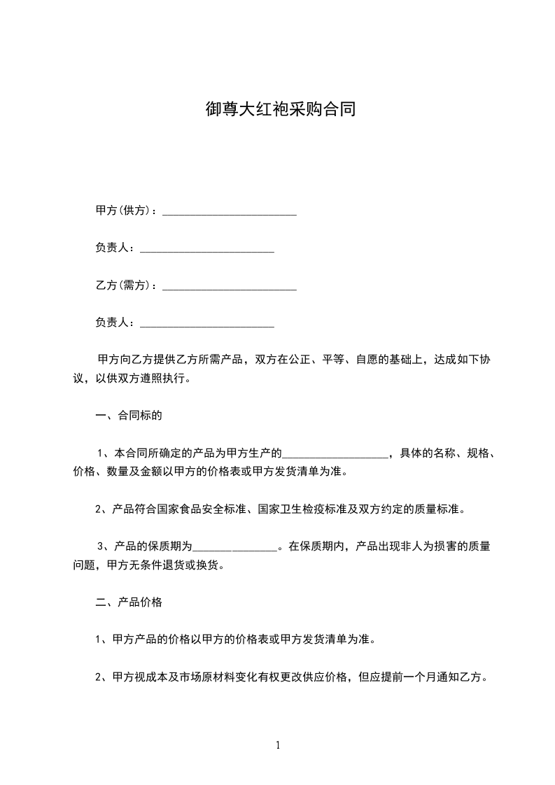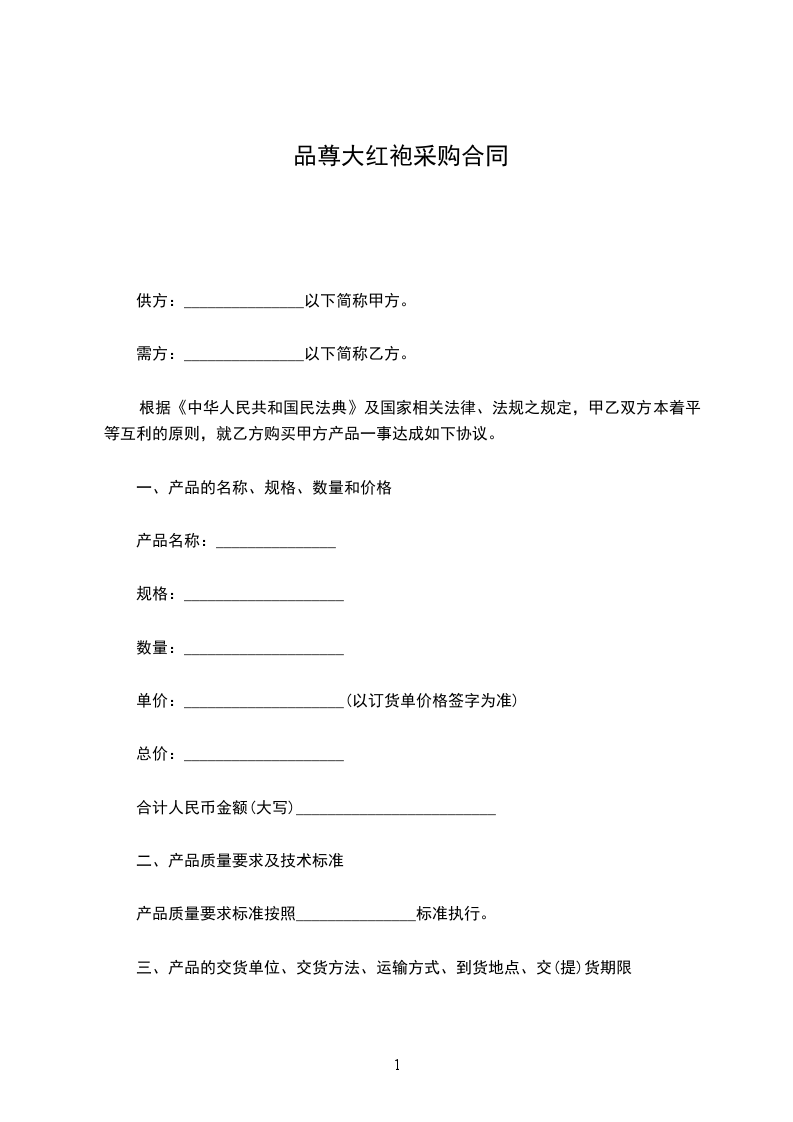 品尊大红袍买卖合同