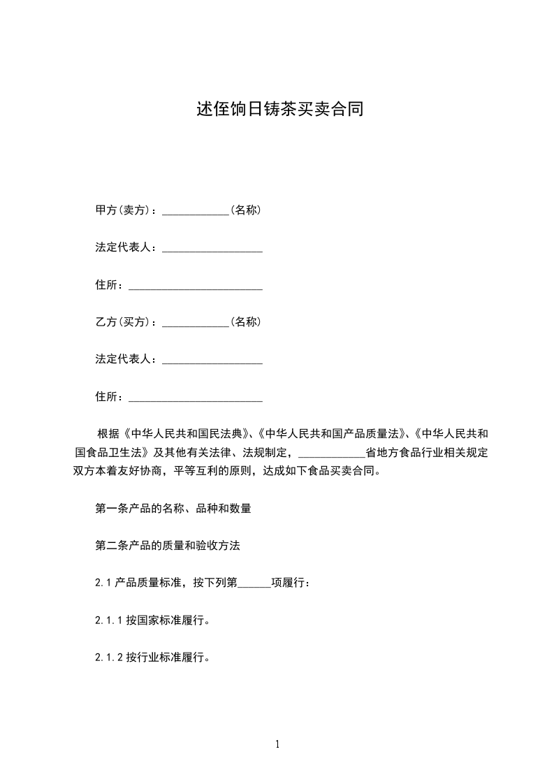 根据《中华人民共和国民法典》、《中华人民共和国产品质量法》、《中华人民共和国食品卫生法》及其他有关法律、法规制定,____________省地方食品行业相关规定,双方本着友好协商,平等互利的原则,达成如下食品买卖合同。