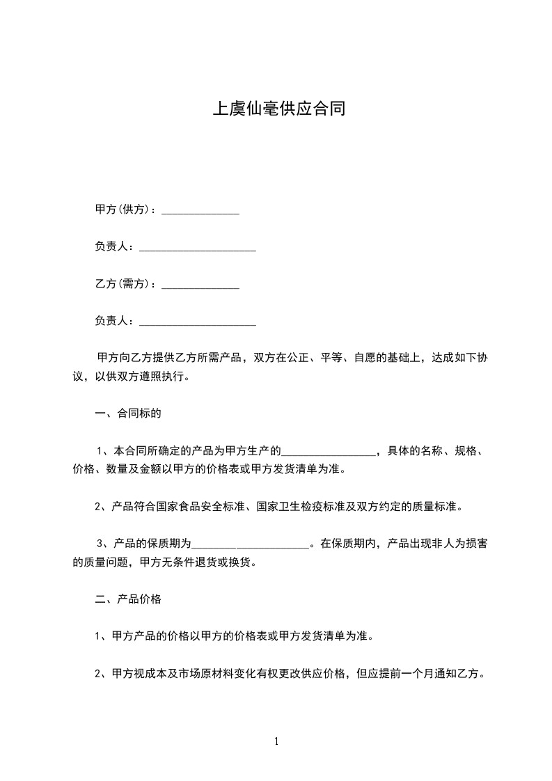 2、甲方视成本及市场原材料变化有权更改供应价格,但应提前一个月通知乙方。