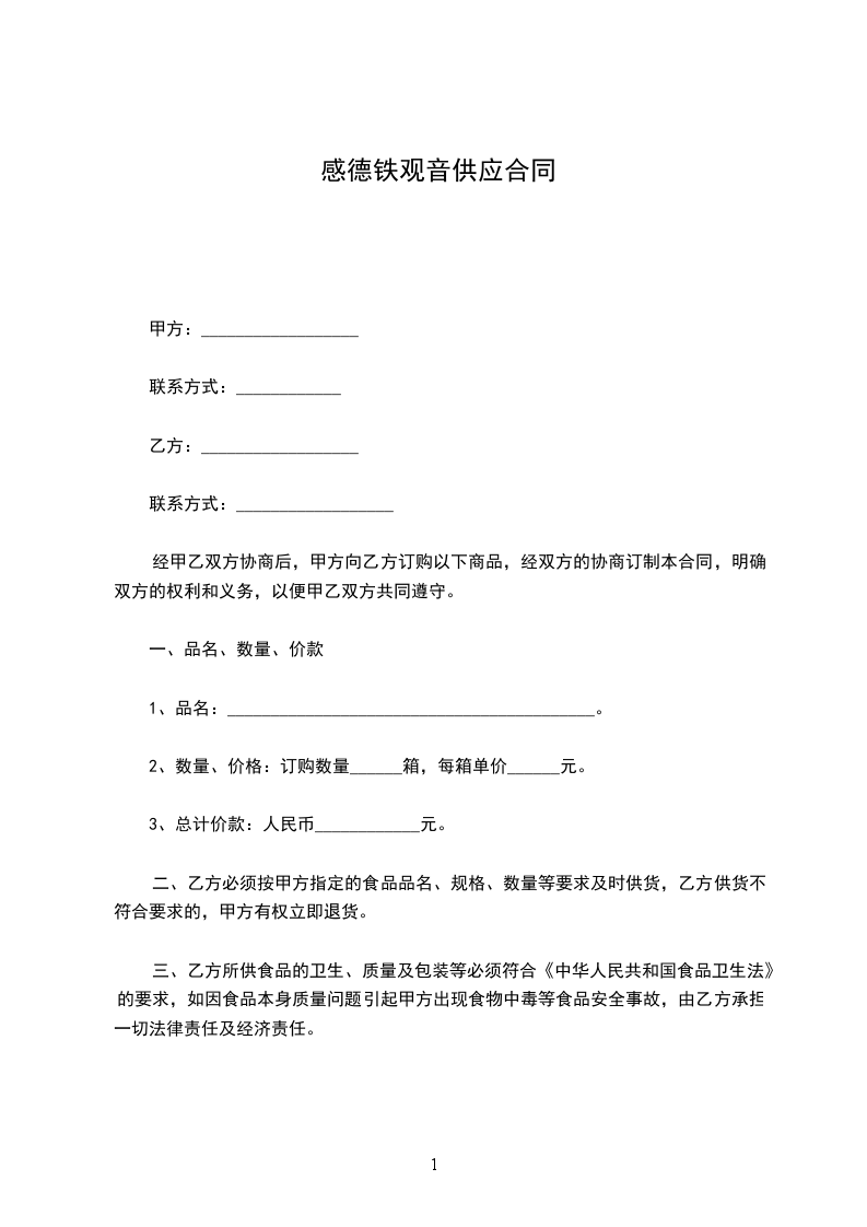 三、乙方所供食品的卫生、质量及包装等必须符合《中华人民共和国食品卫生法》的要求,如因食品本身质量问题引起甲方出现食物中毒等食品安全事故,由乙方承担一切法律责任及经济责任。