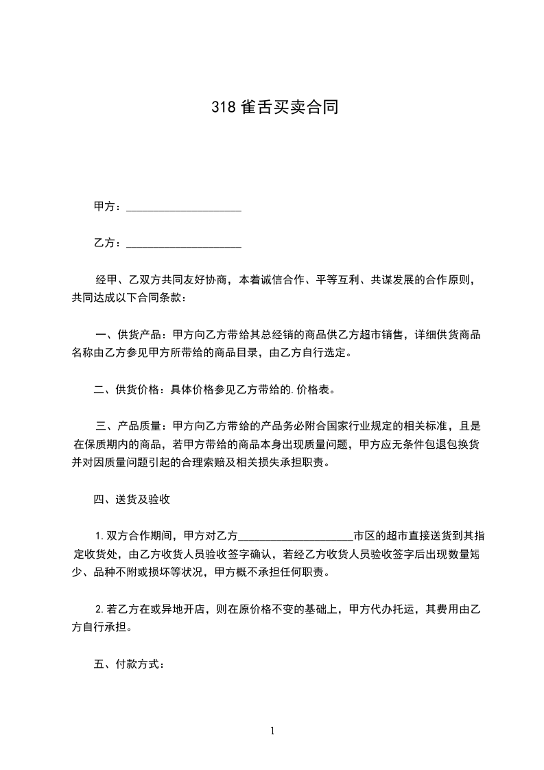 1.双方合作期间,甲方对乙方_____________________市区的超市直接送货到其指定收货处,由乙方收货人员验收签字确认,若经乙方收货人员验收签字后出现数量短少、品种不附或损坏等状况,甲方概不承担任何职责。