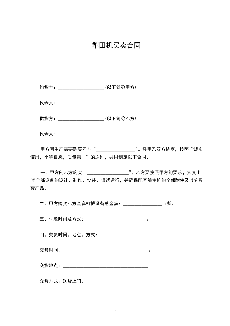 二、甲方购买乙方全套机械设备总金额:_________________元整。