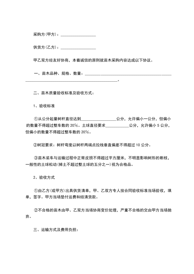 甲乙双方经友好协商,本着诚信的原则就苗木采购内容达成以下协议。