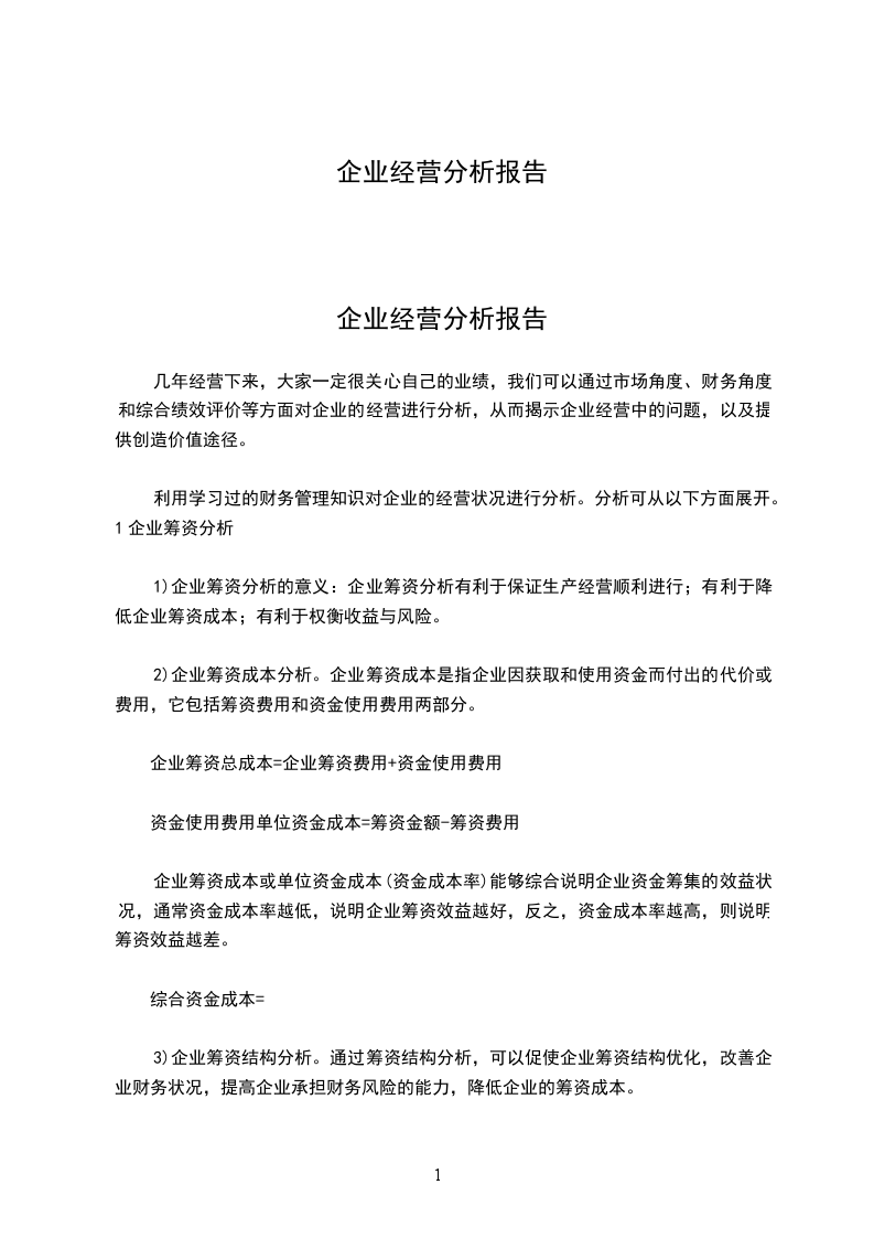 利用学习过的财务管理知识对企业的经营状况进行分析。分析可从以下方面展开。1企业筹资分析