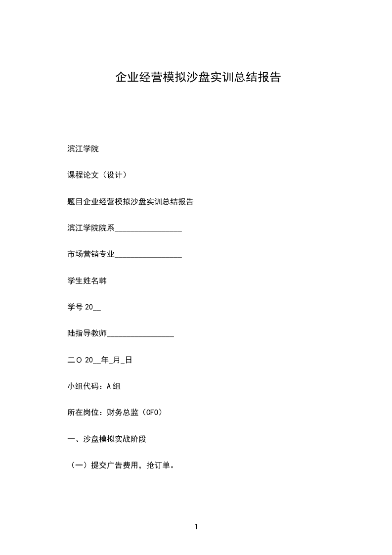 题目企业经营模拟沙盘实训总结报告