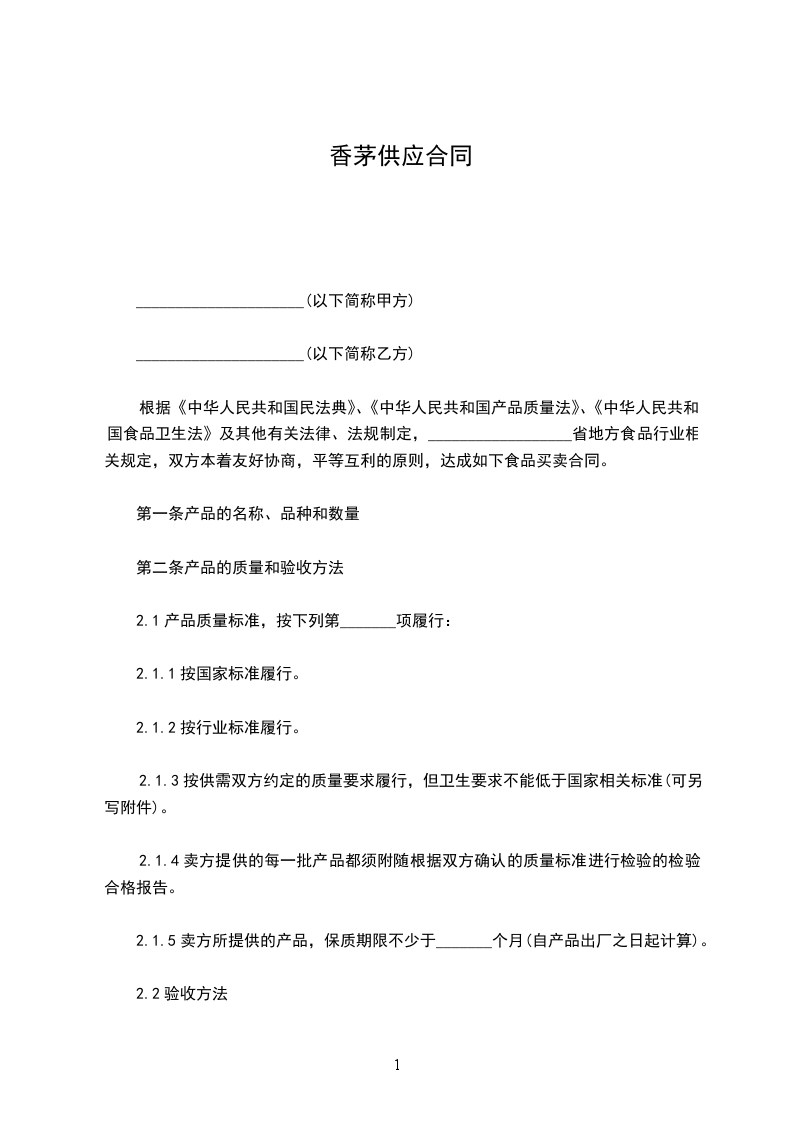 根据《中华人民共和国民法典》、《中华人民共和国产品质量法》、《中华人民共和国食品卫生法》及其他有关法律、法规制定,__________________省地方食品行业相关规定,双方本着友好协商,平等互利的原则,达成如下食品买卖合同。