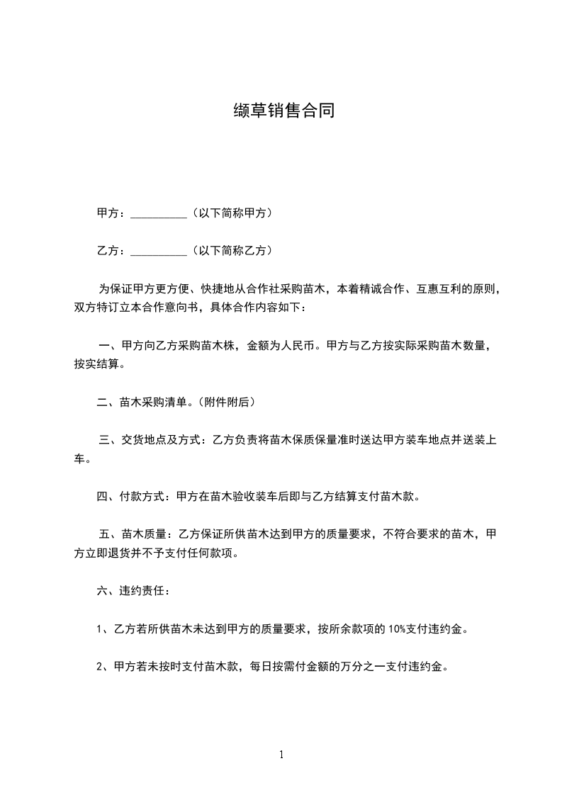 1.供苗时间、地点:乙方于______年_____月_____日至______年_____月_____日向甲方提供上述苗木。具体交货日期由甲方在上述时间段内自行确定,但须提前3天通知乙方。