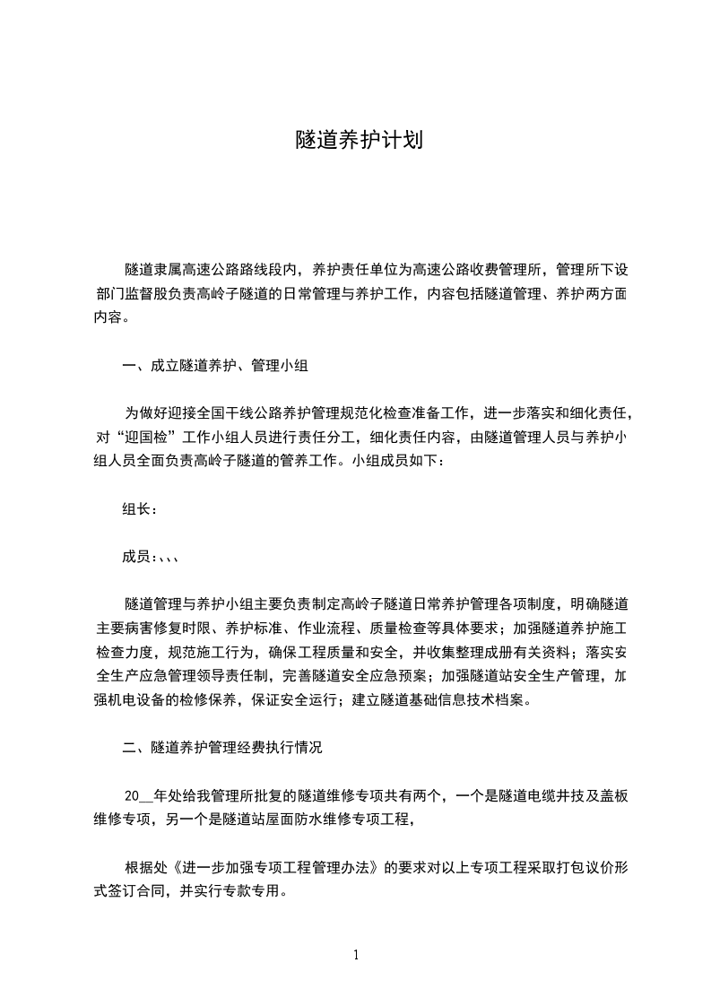 一、成立隧道养护、管理小组