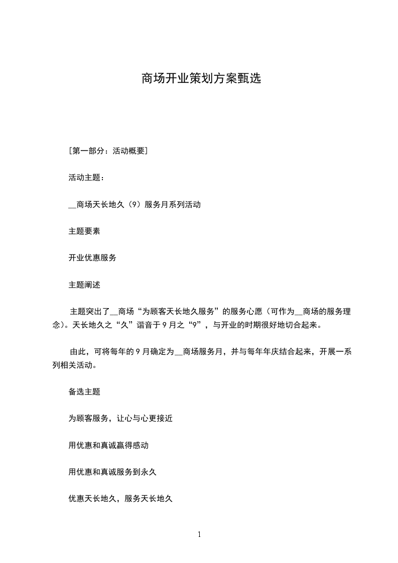 主题突出了__商场“为顾客天长地久服务”的服务心愿(可作为__商场的服务理念)。天长地久之“久”谐音于9月之“9”,与开业的时期很好地切合起来。