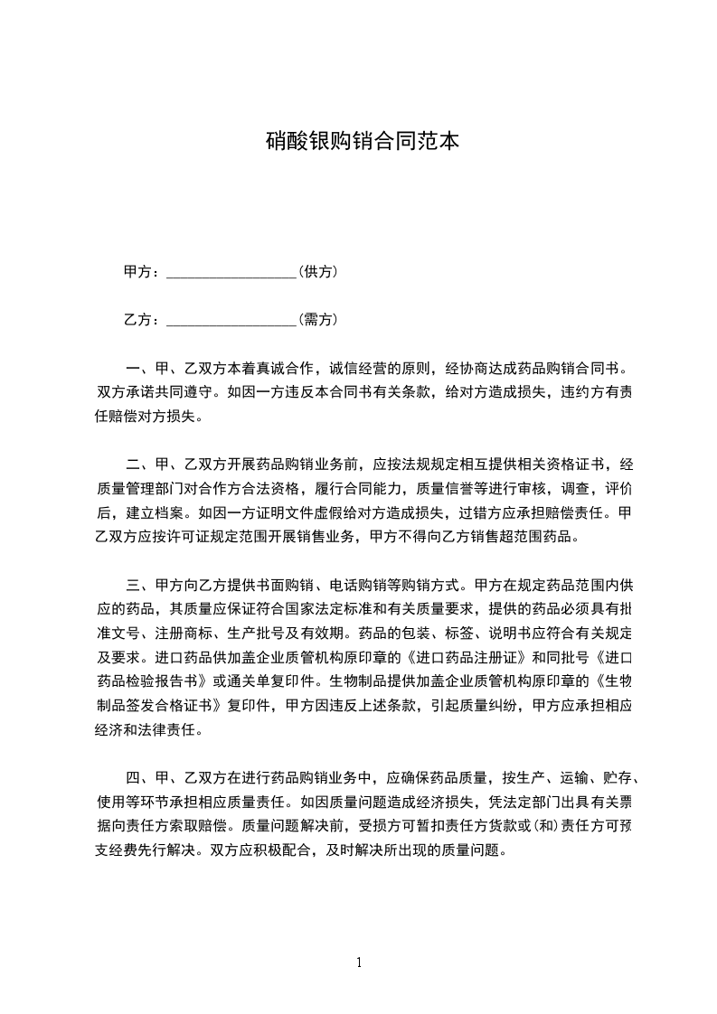 一、甲、乙双方本着真诚合作,诚信经营的原则,经协商达成药品购销合同书。双方承诺共同遵守。如因一方违反本合同书有关条款,给对方造成损失,违约方有责任赔偿对方损失。
