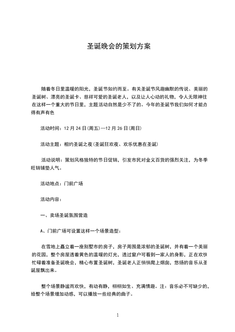 20__年圣诞节即将来临,根据往年市场分析,圣诞节这两天人们反映十分热烈,场面也异常火爆。今年圣诞节为了让人们体会到酒店的辉煌气势和我们酒店独特的圣诞文化氛围,力争做到比往年更具节日气氛;并在装饰和布置以及圣诞套餐上推陈出新,突出新颖和独特;加大广告宣传力度,提高酒店的知名度、指名度
