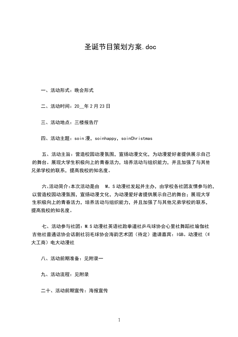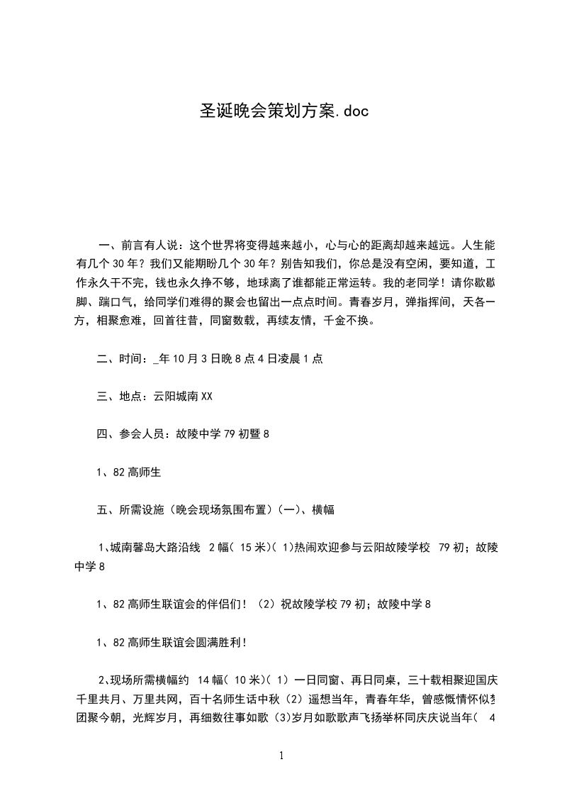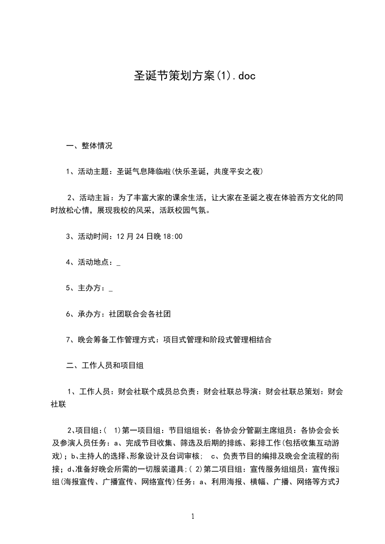 <上圣徒及主持人费用预算:600元;会场布置费用预算1000元)时间:20__年12月24日18:00——20:00