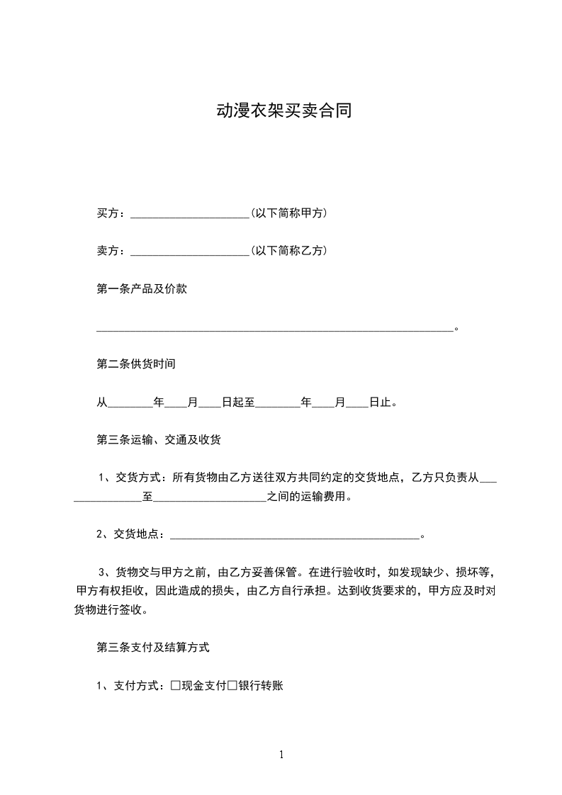 1、交货方式:所有货物由乙方送往双方共同约定的交货地点,乙方只负责从_______________至____________________之间的运输费用。
