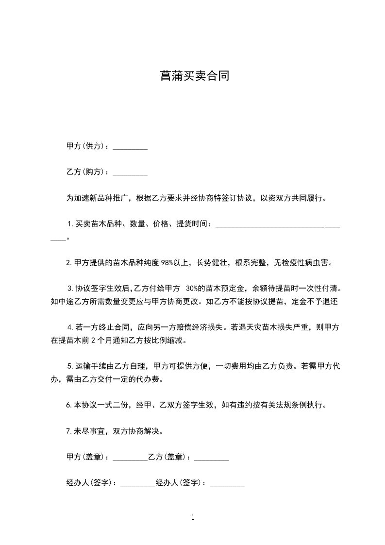 香蒲买卖合同