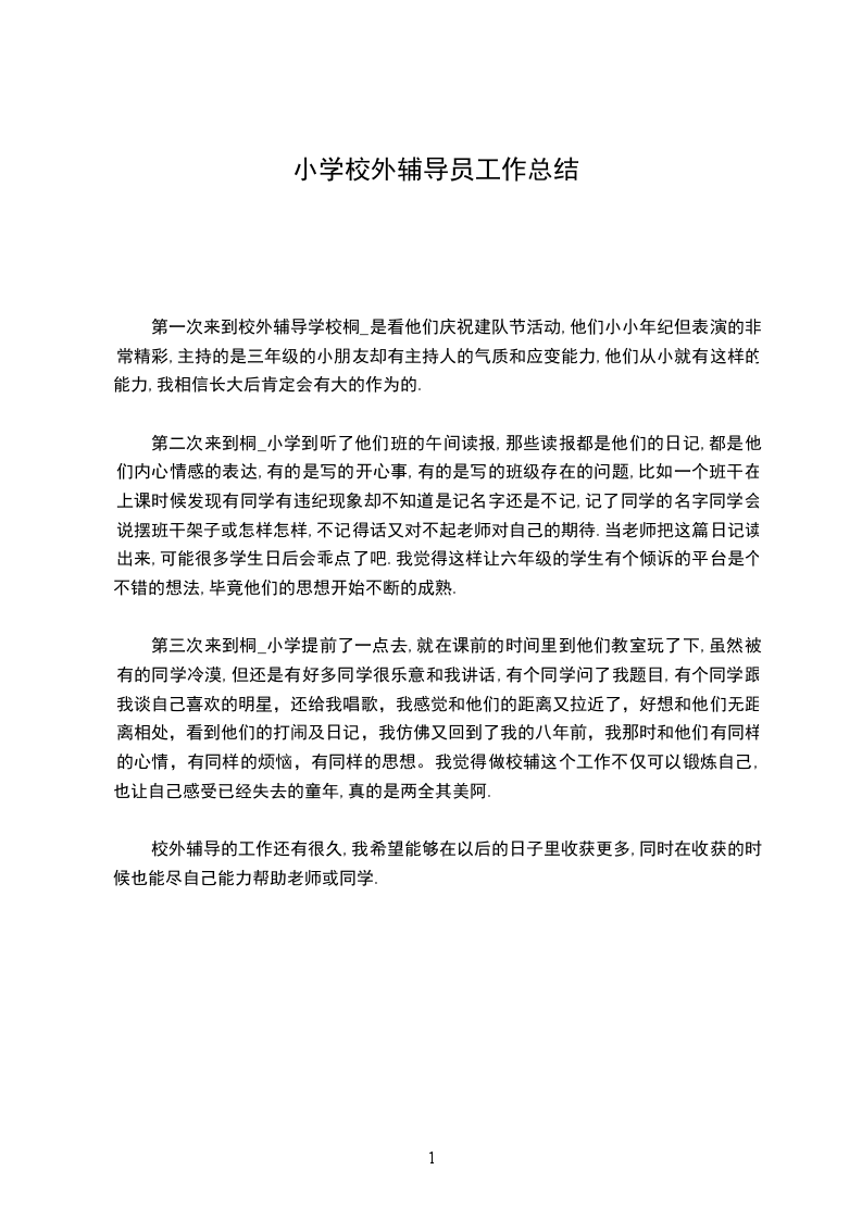 终于成为一名校外辅导员了,我带着满腔激情与无限憧憬投入到这份工作中。这是一次锻炼自己、提升能力的机会,更是一次辅导学生、服务小学的难得经历,我一定要好好珍惜它。