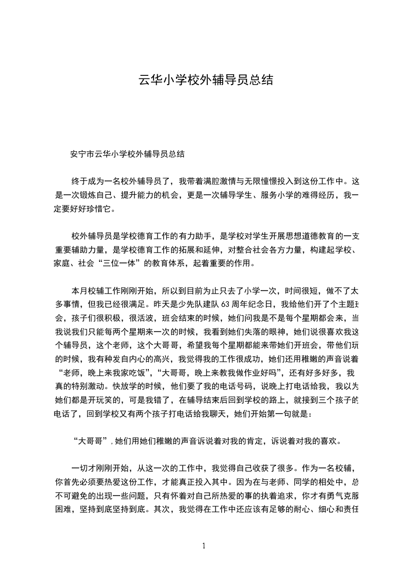 安宁市云华小学校外辅导员总结