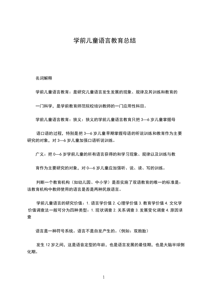 广义:把0—6岁学前儿童的所有语言获得的和学习现象、规律以及训练与教