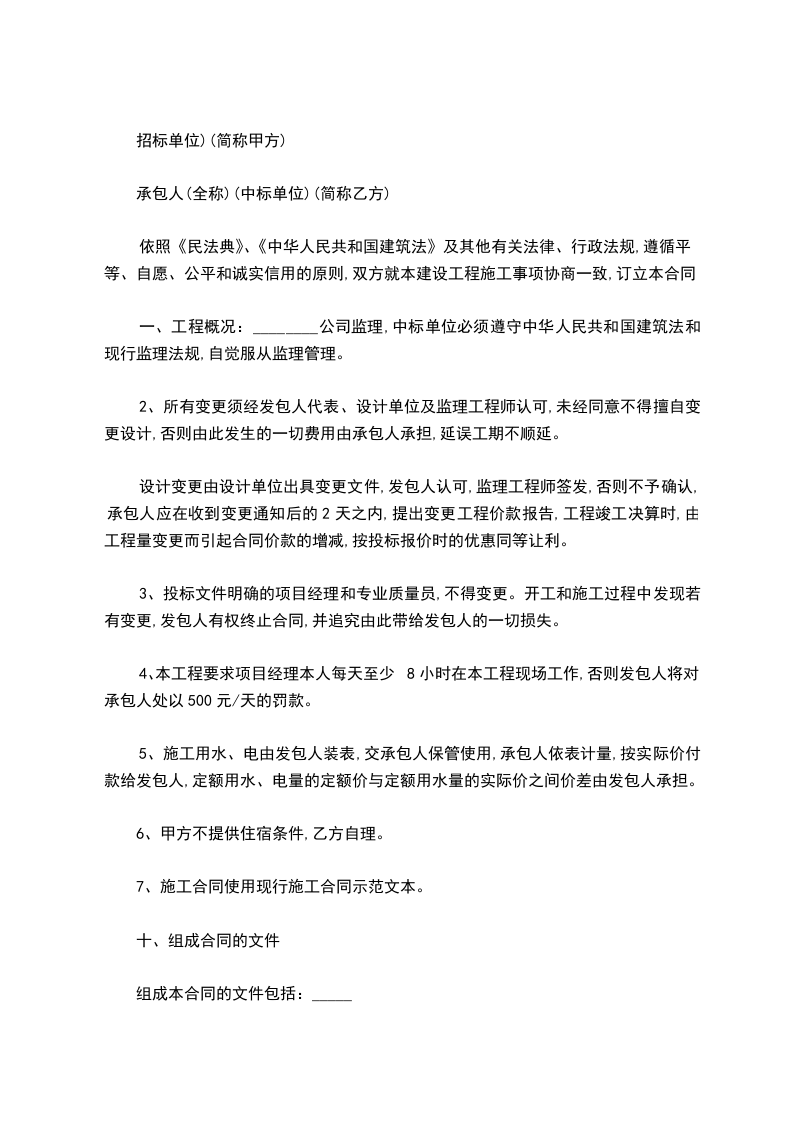 1、 工程如遇特殊情况或不可抗力造成不能施工的,工期可顺延;如发生违约所造成的一切损失,由违约方承担。