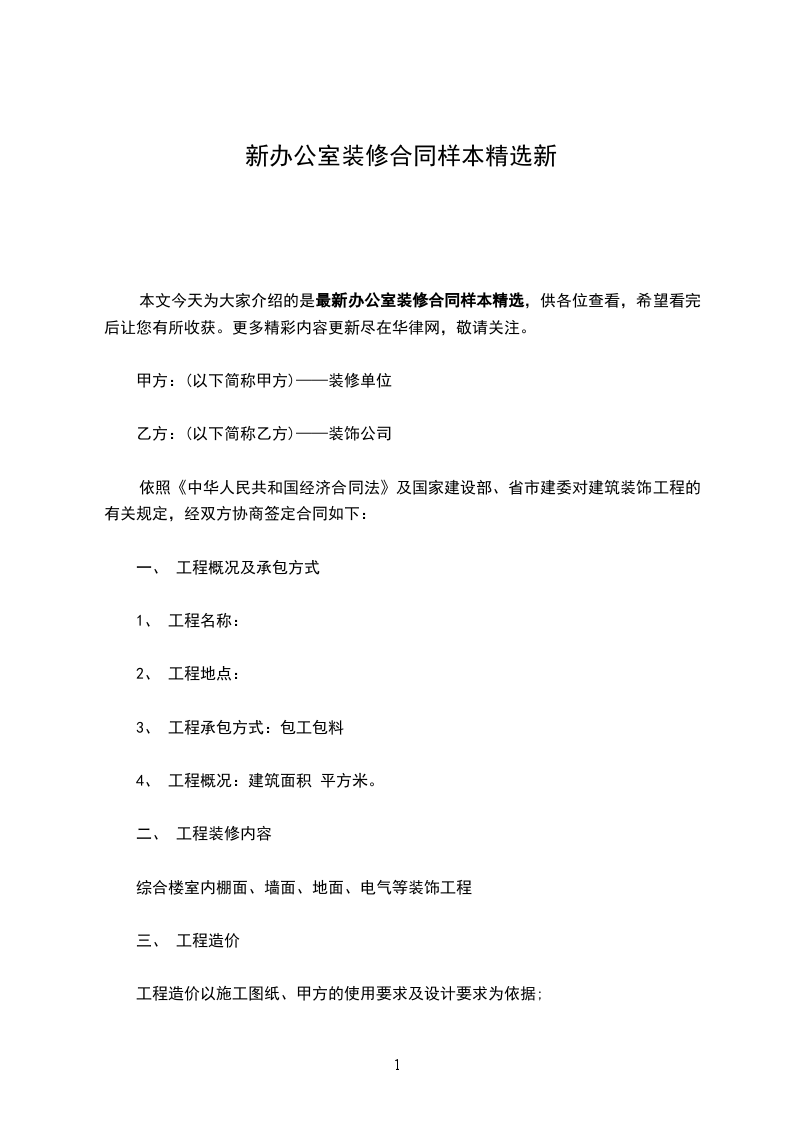 本文今天为大家介绍的是最新办公室装修合同样本精选,供各位查看,希望看完后让您有所收获。更多精彩内容更新尽在,敬请关注。