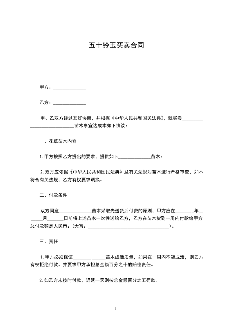 甲、乙双方经过友好协商,并根据《中华人民共和国民法典》,就买卖____________________________苗木事宜达成本如下协议: