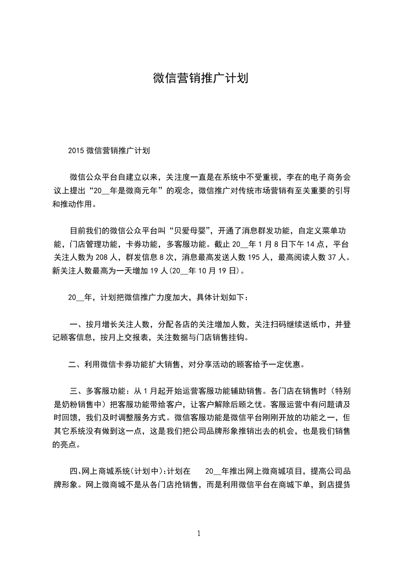 目前我们的微信公众平台叫“贝爱母婴”,开通了消息群发功能,自定义菜单功能,门店管理功能,卡券功能,多客服功能。截止20__年1月8日下午14点,平台关注人数为208人,群发信息8次,消息最高发送人数195人,最高阅读人数37人。新关注人数最高为一天增加19人(20__年10月19日)。