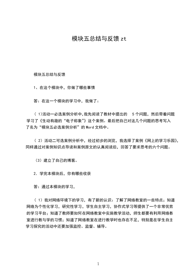 答:在本模块的学习中,我学习了利用博客与大家进行交流。如果教材在较难的地方给予一定的指导,如在学习网络环境下的教学,有相关的一段现场视频,让大家用有身临界其境的感觉,效果会更好,老师们的学习过程会更加的顺利。