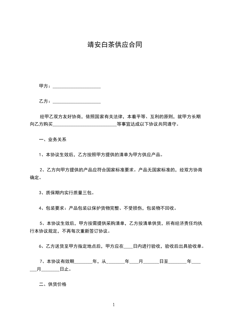 靖安白茶供应合同